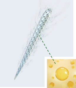 この構造により、デリケートなピュアビタミンC(アスコルビン酸)を針の内部に閉じ込め、コーティングすることに成功しました。