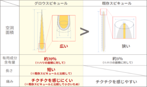 V3シリーズといえば「美容針(イノスピキュール)」ですが、今回は新たに「グロウスピキュール(シリカ)」という技術が採用されています。