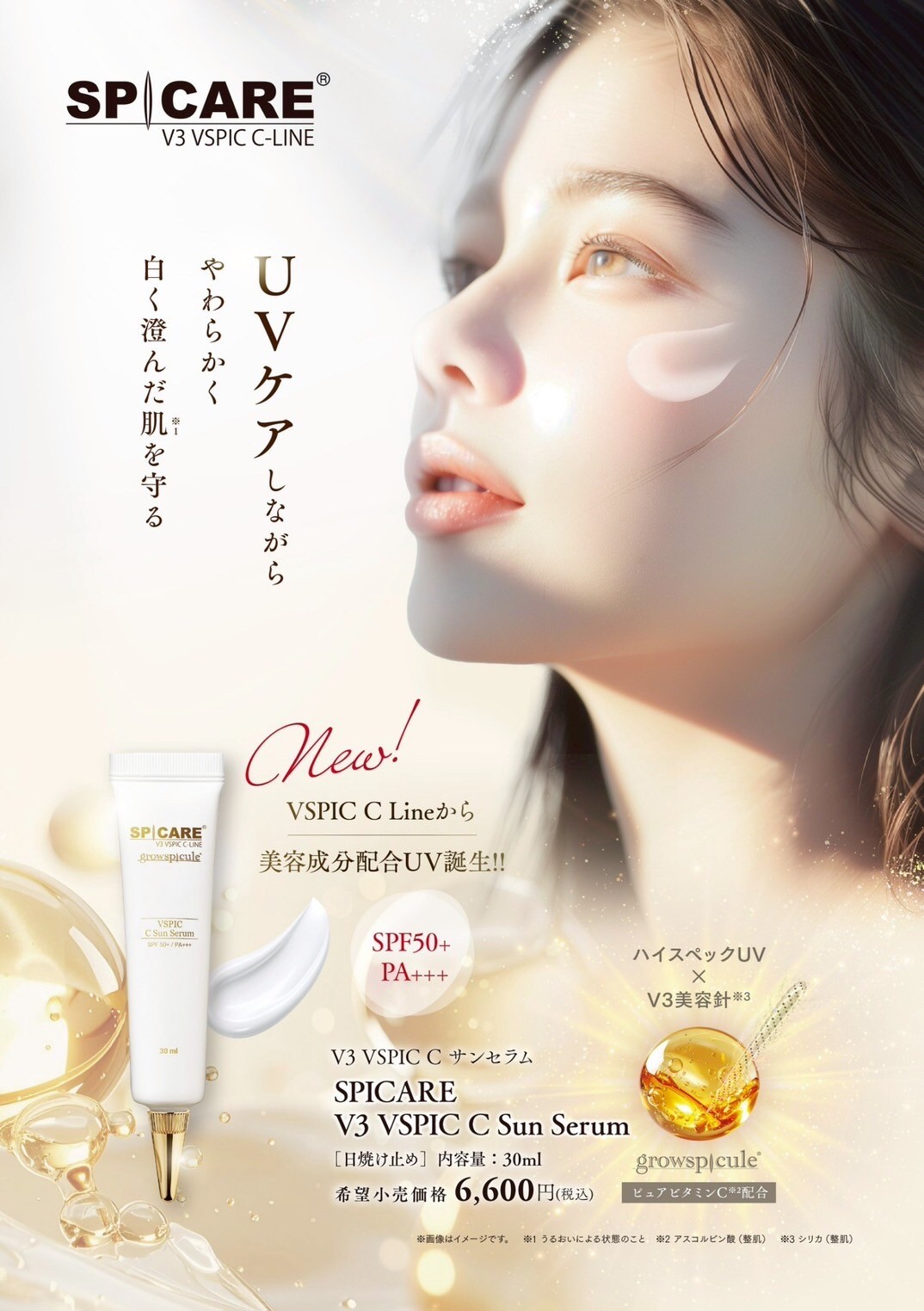 「V3 VSPIC C サンセラム」は、強力なUVカット機能を持ちながら、美容成分をたっぷりと配合した「UVカット美容液」とも呼べるアイテムです。